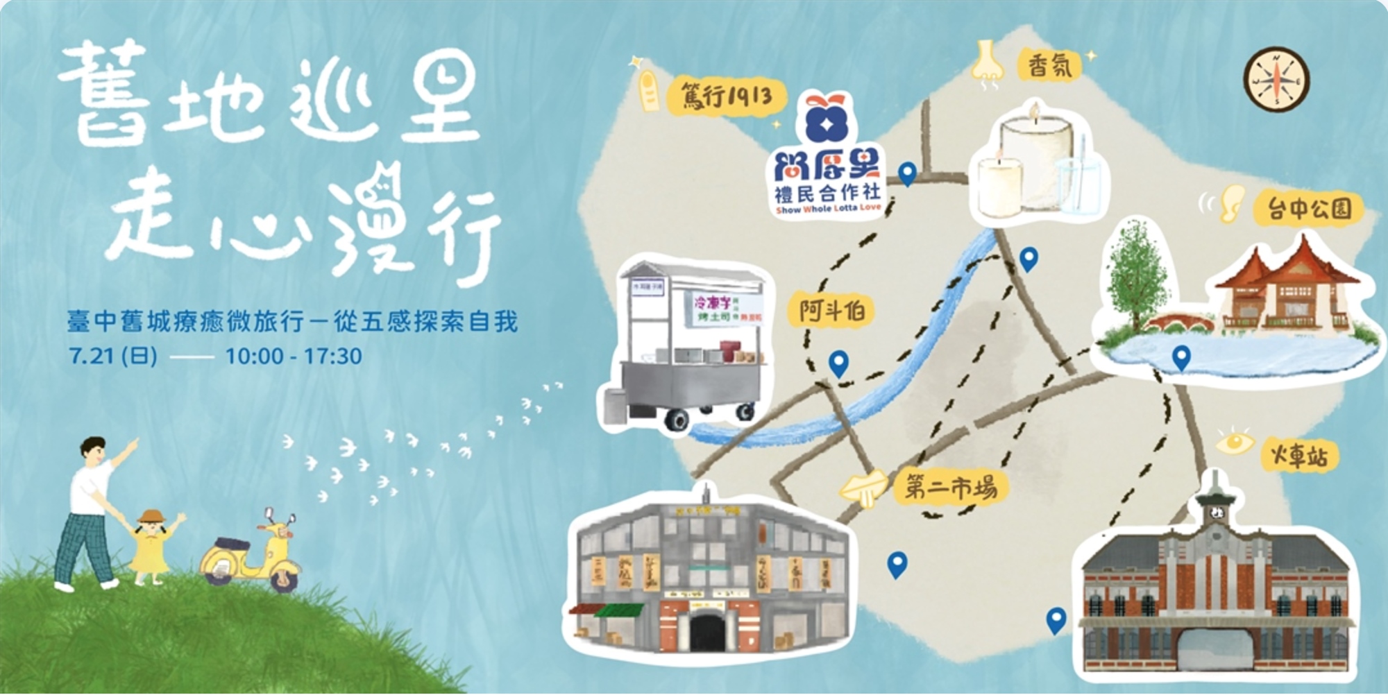 我們會面對許多挑戰,而感到疲憊、受傷,甚至痛苦的時刻,這時喘口氣... 讓身心都休息一下,找回自己與世界的連結,整理自己的同時透過小旅行步行其中,全程會在一位諮商心理師的陪同下徒步走過台中火車站、台中公園、台中第二市場與篤行1913,通過視覺、聽覺、味覺、嗅覺、觸覺來感受台中舊城區帶來的一線生機,這將會是一場身心靈的療癒,並且能從中獲得一些啟發和能量♥️